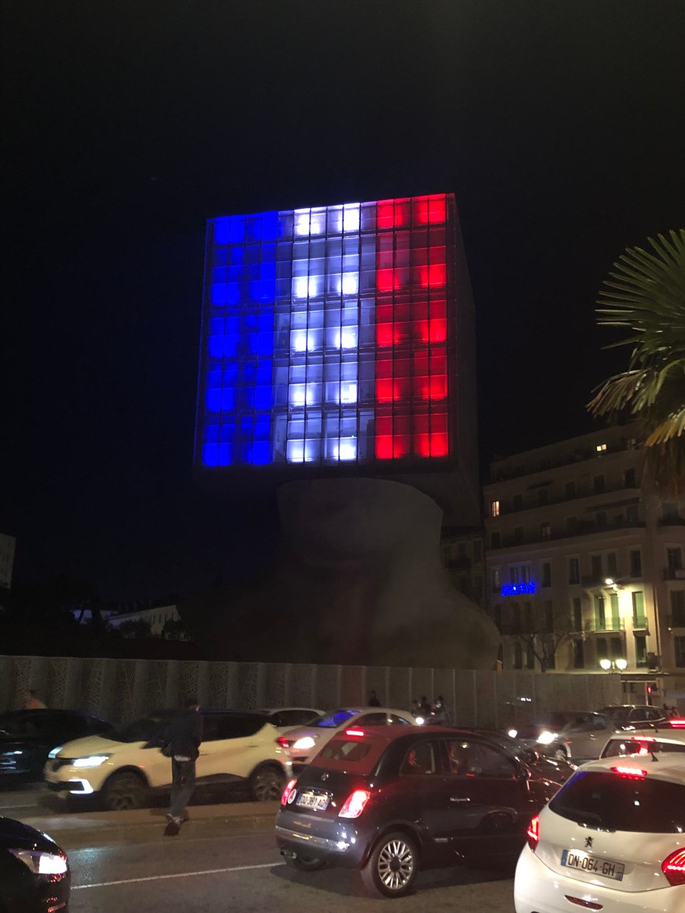 The famous Nice Acropolis building by day and at night.