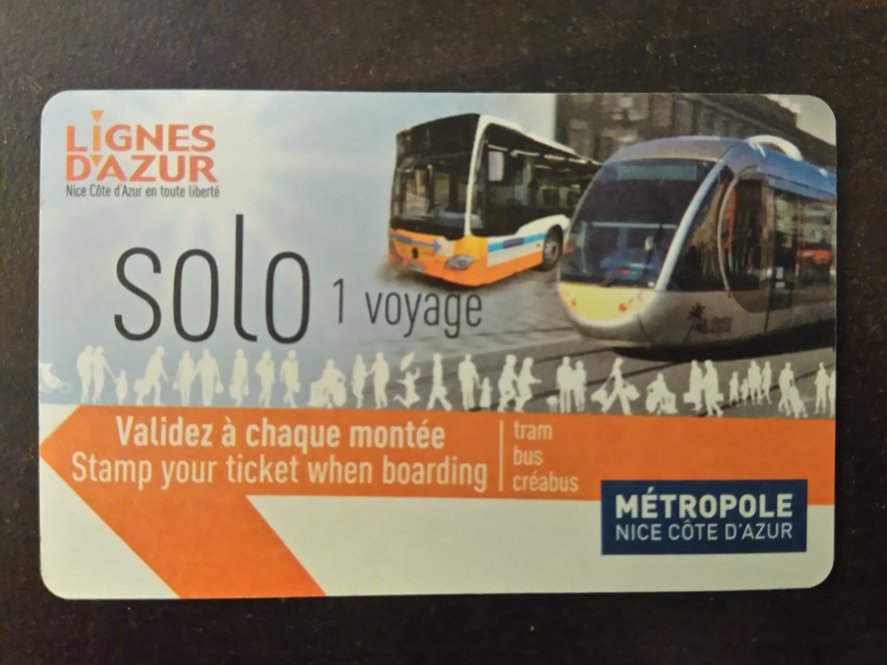 You can also use the tramway system that goes around Nice. Tickets are €1.50 and must be bought before boarding. You can purchase at the tram stops where each tram stops automatically. It only uses coins or cards, no notes. And you can not pay on board.